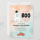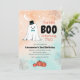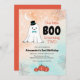Este adorável convite de festas de segundo aniversário de Halloween é ideal para um menino. Ele apresenta um gráfico fantasma encantador com um arco teal e um chapéu de topo, complementado pelo texto lúdico "Our Little BOO está fazendo DOIS".