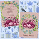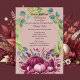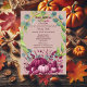 "Nossa abóbora está virando UM" convite de festas de primeiro aniversario para seus convidados. Uau, com a exuberante coroa verde e as vibrantes abóboras roxas. A design tem folhas de outono, uma coroa circular verde e abóboras roxas para celebrar as cores de outono. A ilustração usa uma escrita e uma tipografia modernas que podem ser facilmente personalizadas. O lado inverso tem um design correspondente.