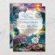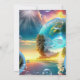 As cores vibrantes desta design são como uma celebração da vida. As bolhas de ar refletem as mentes despertadores de todos no nosso belo planeta. Eu adicionei flores cor-de-rosa com pavões e pomba de liberdade para os convites para cartas.