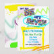 they're not SIX, they're SEVEN! Spray-paint Colorful 7th Birthday Invitation. SIX SEVEN!