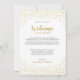 Nota de Boas-Vindas de Casamento Moderna e Elegante em Dourado com Confetes.