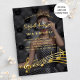Personalize e adicione sua foto. Decorado com notas falsas de música dourada. Modelos para informações sobre a sua parte. Volta: padrão de folhagem negra como fundo. Usei uma cobertura escura sobre a foto para que seja mais fácil ler o texto. Eu adicionei 2 camadas, mas apenas uma está ativa. Há um pequeno símbolo na extremidade da camada/linha de sobreposição que você pode clicar para ocultar ou ocultar