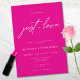 A stunningly simple hot pink and white modern bridal shower invitation with a focus on love. Features an elegant modern, clean font and script typography reading "nothing fancy, just love". Ideal for a minimalist or contemporary event. Created by Simply Farmhouse Press.