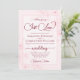 This beautiful wedding invitation features a pretty boho chic watercolor background of pale blush pink peony flowers & leaves with a design that is elegant, whimsical, and fun. The typography features modern script lettering with swashes and flourishes on the ends of the letters reading "Nothing fancy, just love!" Lovely way to invite your friends and family to share in your joy your special day.
