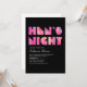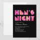 Convites de festas noturnos de Hen moderno com um design preto, rosa-quente, azul, amarelo e vermelho. Para um nadador extra escolha papel metálico prateado.