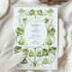Abraçar a elegância eterno do movimento Art Nouveau com este sofisticado convite ao casamento. A design apresenta uma fenda de aquarela, pintada à mão, de videiras graciosamente girantes e folhas estilizadas. A folhagem intrincada e simétrica é feita numa luxuosa paleta monocromática de verdes, desde o chartreuso macio e o sábio até à azeitona profunda, criando uma textura rica e orgânica. Essa bela trabalho de arte botânica forma naturalmente um oval central para enquadrar seus detalhes de casamento, que são apresentados em uma tipografia clássica e refinada. Perfeito para um sofisticado casamento de jardins, uma celebração para amantes de arte, ou um evento único de temas botânicos, este convite é uma escolha incrível para casais que buscam um design orgânico e elegante.