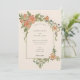 Apresentando um convite para o casamento de Art Nouveau, maravilhosamente adorado com delicados designs florais da íris. A frente do convite é enquadrada por flores vibrantes da íris em tons de pêssego, roxo e verde, acentuados com detalhes intrincados do ouro. Esta elegante design é colocada sobre um fundo de marfim quente, destacando o eterno e a fonte de serifa romântica. O verso do convite contém um emblema floral correspondente, unindo perfeitamente a estética geral. Perfeito para casais que desejam um convite de casamento que exude encanto vintage e arte sofisticada.