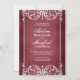 Estes convites para casamento de ricos, em tons espantosos de vermelho branco e vermelho farto e rico, são uma elegante mistura de sensibilidades de Art Nouveau e Vitoriano, com uma sofisticada estrutura de lindas espirais e delicadas obras de rolagem, e texto em elegante roteiro e serif clássica e fontes de bloqueio. O convite para o casamento é completamente personalizável. Personalize a parte traseira com suas informações de recepção e/ou RSVP para economizar custos em RSVP e cartões de recepção separados, ou exclua esses campos para deixar o vazio traseiro.