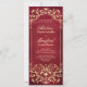 Estes convites para casamento de ricos, em tons deslumbrantes de ouro pálido e vermelho rico, são uma elegante mistura de sensibilidades Art Nouveau e Victoriana, com uma sofisticada estrutura de lindas espirais e delicadas obras de rolagem, e texto em escritura elegante e serif clássica e fontes de bloqueio. O convite para o casamento é completamente personalizável. Personalize a parte traseira com suas informações de recepção e/ou RSVP para economizar custos em RSVP e cartões de recepção separados, ou exclua esses campos para deixar o vazio traseiro.