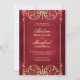 Esses convites para casamento de ricos, em tons deslumbrantes de ouro pálido e vermelho rico, são uma elegante mistura de sensibilidades de Art Nouveau e Victoriana, com uma sofisticada estrutura de lindas espirais e delicadas obras de rolagem, e texto em roteiro elegante e serif clássica e fontes de bloqueio. O convite para o casamento é completamente personalizável. Personalize a parte traseira com suas informações de recepção e/ou RSVP para economizar custos em RSVP e cartões de recepção separados, ou exclua esses campos para deixar o vazio traseiro.