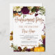 Tendy moderna tipografia do cobre, nova convite de festas de outono, com lindas flores burgundy e creme de marfim, com folhas secas e folhagem e uma abóbora laranja de cor d'água. ++++++++++++++++ O convite é adequado para festas de aquecimento doméstico de na moda glam.