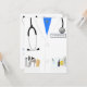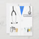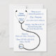 Um convite divertido para uma festa de formatura de licenciatura médica. A frente apresenta um gráfico de um casaco com personalização disponível no nametag. A parte de trás do convite dá muito espaço para detalhes da festa. Arte vetorial original pela Menagerie de Night Owl 2015.