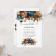 Trendy watercolor floral adiou o anúncio de casamento em acentos de gengibre - laranja castanho e marinho azul-indigo.
