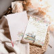 Espessura de 18 pt / Gramatura de 120 lb. Branco suave, textura delicada.