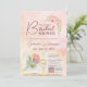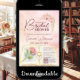 Ajude a noiva a celebrar o início de seu novo capítulo com este lindo convite de chá de panela floral em aquarela rosa. Apresenta uma adorável aquarela de um anel de noivado equilibrado nas páginas de um livro aberto formando uma sombra em forma de coração. A tipografia inclui letras em escrita moderna e há espaço para todos os detalhes, incluindo RSVP e um código QR personalizável para a lista de presentes. Linda maneira de mostrar amor e apoio.