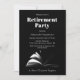Um convite de festas de aposentadoria preto-e-branco com um livro aberto e as palavras, "Começa um Novo Capítulo" Hora de virar uma nova página na vida.