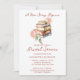 Livro de histórias novo capítulo chá de panela editável modelo instantâneo download digital, livros lendo convites de chá de panela temáticos, pilha aquarela de livros e rosa escrita manual casual