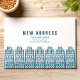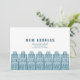 Cidade estilo retrô com prédios de cidade de desenho animado em azul para um anúncio de novo endereço muito exclusivo.