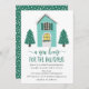 Convide convidados para a sua festa virtual de inauguração em estilo com o nosso convite para as Férias da Nova Casa. O convite para o aquecimento das casas no inverno exibe uma casa ilustrada coberta de neve com pinheiros e tipografia manuscrita em um esquema de cor verde. Personalize os convites para o aquecimento doméstico adicionando a data e a hora do evento. link do evento, etc. O verso exibe um design verde e branco pontilhado.
