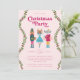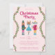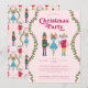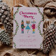 Cartão de convite de festas de janto Whimsical e moderno de Natal, com ilustração desenhada à mão de personagens balés de um cão, de um gato e de um rato.