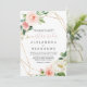 Felicite seu casamento russo espanhol com este convite de vaivém geométrico elegante de ouro. O design apresenta flores brancas e cor-de-água cor-de-rosa com folhas verdes, enfeitando uma moldura geométrica dourada.