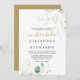 Convites Nuestra da Caligrafia Eucalyptus Verde Dourada
