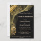Textura rica e elegante de Nuggets de Ouro pousada sobre um Véu amarelo dourado. O design é preto e dourado com um texto claro dourado/marrom claro. Uma garrafa de Champanhe em um balde de gelo adiciona uma nota festiva encantadora ao seu evento.