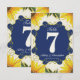 Este número de mesa de casamento azul-marinho e amarelo de dupla face apresenta belos girassóis amarelos em um fundo vintage. Eles são perfeitos para festas de jardim, casamentos em celeiros e temas de recepção de casamento com girassóis. Cada número de mesa deve ser personalizado e adicionado individualmente ao seu carrinho de compras. Os cartões de número de mesa são de dois lados com espaço para adicionar os nomes da noiva e do noivo. Certifique-se de alterar a redação em ambos os lados. Criado por Victoria na VG Invites. Para ver mais da decoração de recepção de casamento com girassóis de Victoria, visite www.zazzle.com/vginvites
