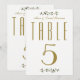Tipografia dourada falsa com imagens de frutos vermelhos e hera verde na parte superior e inferior. O nosso cartão de número de mesa elegante será o toque final para as decorações de mesa da recepção de casamento ELEGANTES. Veja mais da coleção de papéis de casamento de Natal na Heart Song Notes na Zazzle.