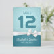 Modelos de Cartão de Assento de Casamento / Número da Mesa / Cartão de Acompanhante - Fundo Turquesa e Fita Branca Vintage.