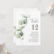 Planeje sua recepção de casamento com precisão, desde o "save the date" até os eventos do dia do casamento, como a recepção e os arranjos de assentos, com esses cartões de assentos com números de mesa com folhas de eucalipto botânico.