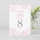 Elegante e romântica mesa de núpcias design em cor rosa e cinza de pérola. O design é apresentado nos lados frontal e traseiro da placa. Personalize e adicione cada número de tabela individual ao seu carrinho de compro.