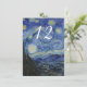 Cartão de número de mesa de recepção de casamento colorido, com a pintura de arte fina de Noite Estrelada de Vincent van Gogh. Personalize o número branco para cada mesa na sua recepção. Produtos de casamento correspondentes estão disponíveis.