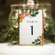 Cartão de número de tabela com o tema Citrus, com camada aquosa de cor verde, laranjas e limões. Impressões da placa de número de tabela na frente e atrás (frente e verso). Os itens são impressos exatamente como aparecem na tela quando você adiciona ao carrinho, por isso personalize e adicione cada número de tabela que você precisa ao carrinho individualmente.