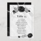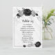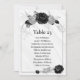 cinza prateada elegante e placa de número de assento de flores pretas Os detalhes de brilho são simulados