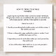 Elevem sua recepção de casamento com nossos belos números de mesas, projetados para misturar minimalismo moderno com elegância romântica. Cada peça apresenta detalhes delicados de caligrafia que captam graciosamente a essência do seu dia especial. Feito com cuidado, esses números de tabelas servem tanto como um guia funcional quanto como um elemento de decoração impressionante, garantindo que seus convidados se sintam bem-vindos e apreciados. Quer você esteja planejando um casamento de jardim, uma celebração de chic no interior, ou um evento de destino, esses números de tabela complementam qualquer cenário. Você pode editar este design usando a ferramenta design, e fazer alterações no tamanho da fonte do número, no estilo da fonte e até mesmo no posicionamento, você também pode alterar a "cor do plano de fundo", apenas para se certificar de aplicar quaisquer alterações feitas às camadas frontal e traseira. O tamanho padrão é de 3,5" x 5", a placa de mesa está disponível em vários tamanhos. Informações sobre pedidos: Para criar uma experiência perfeita para seus convidados, observe que cada número de tabela deve ser solicitado individualmente. Isso permite que você personalize os números de acordo com sua disposição exclusiva de assentos. Faça seu casamento realmente inesquecível com nossos elegantes números de mesas, uma mistura perfeita de estilo e sofisticação. Ideal para quadros ou peça o seu hoje!