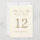 NOTA: cada placa numérica da tabela deve ser personalizada e adicionada individualmente ao carrinho de compro. O cartão elegante inclui um Sr. e Sra. monograma florescidos com caligrafia de ouro e sotaques de design de rolagem. Duas design laterais. Para alterar a cor de fundo (marfim branco suave), vá para Personalizar / Editar / Fundo.