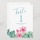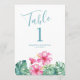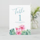 Projetado para coordenar com a suíte de papelaria de florais de cor d'água tropical de Do Tell A Belle, este novo número de tabela botânica apresenta um spray de flores verdes e cor-de-rosa brilhantes com o número da sua mesa, nomes e data de casamento. Perfeito para casamentos na Flórida, recepções de casamento temáticas de primavera, jantas de ensaio e chás de panela. Para mais informações, visite www.zazzle.com/dotellabelle Contacte-me se necessitar de mais itens.