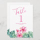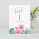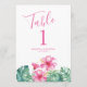Projetado para coordenar com a suíte de papelaria de florais de cor d'água tropical de Do Tell A Belle, este novo número de tabela botânica apresenta um spray de flores luxuosas verdes e de hibisco rosa com seu número de tabela, nomes e data de casamento em um rosa vibrante. Perfeito para casamentos na Flórida, recepções de casamento temáticas de primavera, jantas de ensaio e chás de panela. Para mais informações, visite www.zazzle.com/dotellabelle Contacte-me se necessitar de mais itens.