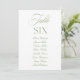 Convites Número da Tabela de Casamento Verde e Branco da El