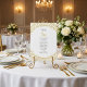 Círculo de efeitos Dourados Número da Tabela Gráfico Sentado. Com numeração fácil de ler e um design geométrico clássico de deco de arte ajuda seus hóspedes a encontrar seu lugar com facilidade, para que possam se concentrar em divertir-se com a sua refeição de recepção de casamento incrivelmente fácil! Você pode escolher seu próprio número e nomes de convidados de casamento. A placa é impressa em ambos os lados. Observe que o efeito ouro está impresso.