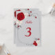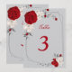 Convites número da tabela de flores vermelhas e brancas