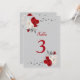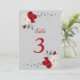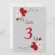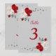 Convites número da tabela de flores vermelhas e brancas