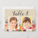 Os números das tabelas apresentam fotos da noiva e do noivo em uma idade que corresponde ao número da tabela. Para personalizar: digite o número da tabela, clique em "alterar" pelas fotos padrão para carregar suas próprias fotos digitais ou digitalizadas e adicione esse cartão de número de tabela individual ao seu carrinho de compro. Repita para todos os números de tabela necessários. O cartão inclui uma cor de fundo bege neutra com texto de escrita de cinza escura e um design de cor de água floral rústico com belos rosas, dahlias, flores de pénia e verde, num belo verão ou numa paleta de outono de vermelho borrado, amarelo ouro, laranja cor de pêssego, rosa pincelado e tons de verde.