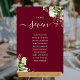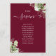 Estes elegantes e verdinhos botânicos vermelhos e burguentos deixam números de mesas de casamento podem ser personalizados com o plano de assentos dos seus convidados em tipografia quic. As placas são impressas na parte frontal e traseira (lado duplo). Projetado por Thisnotme©
