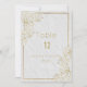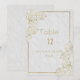 Um elegante lugar floral francês branco e dourado, design de folha de ouro tropical com tipografia dourada escrita à mão. Estes convites de números de mesas de casamento de luxo são o impressão perfeito para qualquer evento de casamento de noiva e noiva. Personalize este design com seus detalhes e monograma inicial. Todas as designs são impressas.