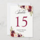 Convites Número da Tabela Floral de Casamento Vermelho Mars