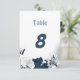 cartão de número de tabela personalizável elegante marinho elegante e número de tabela de flores brancas