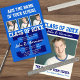 Um simples design elegante em azul e branco para a festa de formatura de um atleta. Acessa basquete, jogadores de futebol ou beisebol. Adicione facilmente suas próprias fotos e personalize com seu uniforme/número de camisa. Todas as cores de fonte e fundo neste design podem ser personalizadas para corresponder exatamente às cores da sua própria escola.