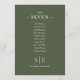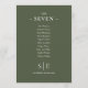Estes elegantes números de mesa de casamento em verde oliva podem ser personalizados com o seu monograma e plano de assentos dos convidados em tipografia sofisticada. Os cartões são impressos na frente e no verso (frente e verso). Concebido por Thisisnotme©